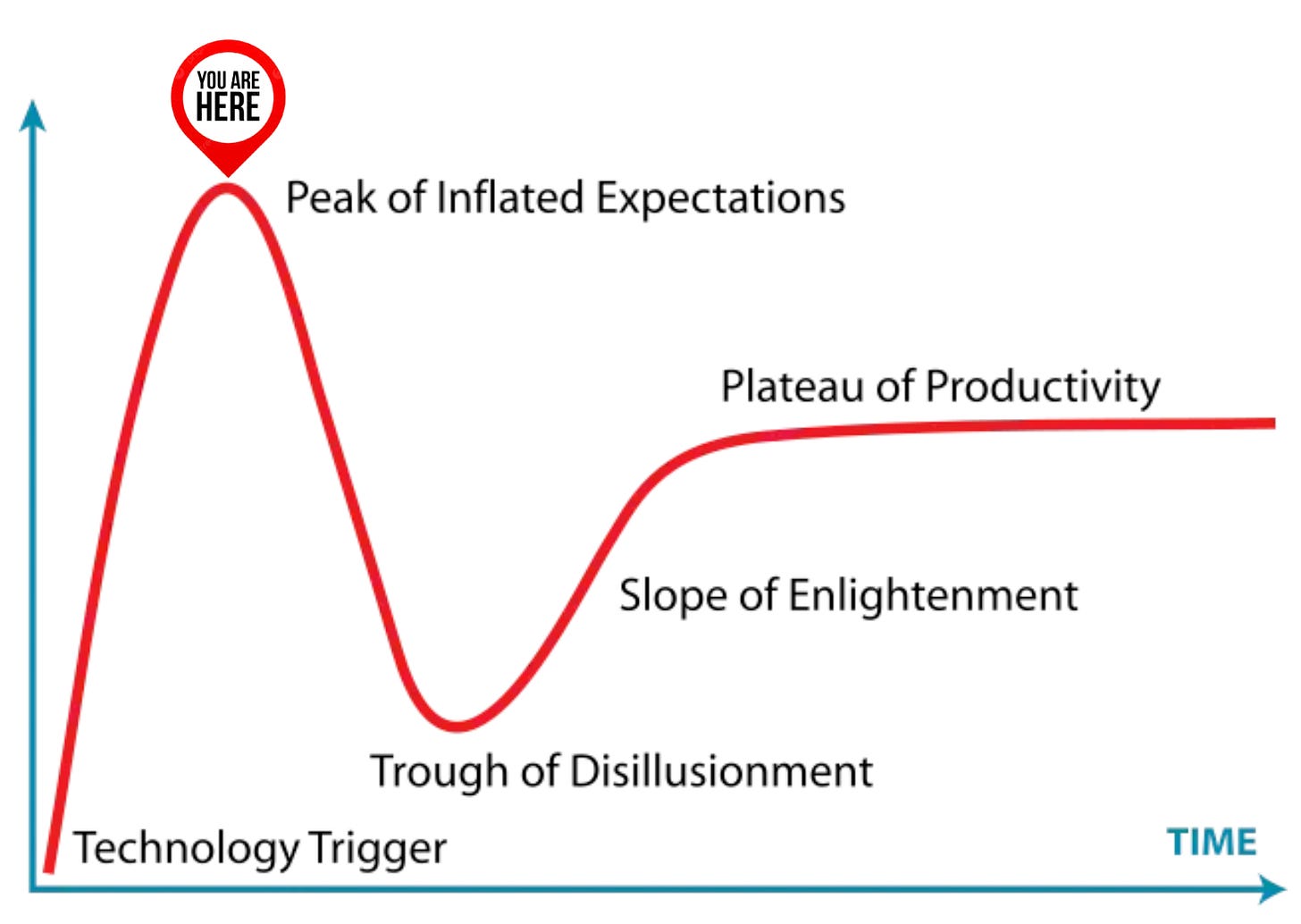 Things feel a little crazy right now—valuations, marketing, rush to put “AI” on everything—and that’s to be expected. Virtually every transformative technology goes through a hype cycle, and we’re squarely in the “peak of inflated expectations” as defined by Gartner.